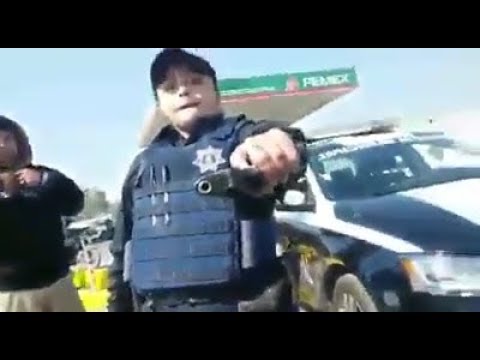 se ve como una oficial apunta con su arma a persona que se negaba a bajar del vehículo por miedo a represalias