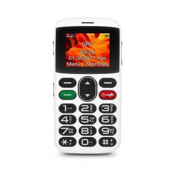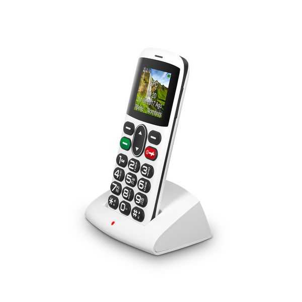 Otras características | - Linterna - Radio FM - Cámara - Calculadora - Calendario Características de emergencia - 5 números SOS - Mensajes SOS Características de llamada - Mensajes de texto - Perfiles de audio, tonos polifónicos y vibración Batería - Batería de litio de 1000mAh Dimensiones y peso - 111,5 x 53 x 11 mm. - Peso: 81.5 g. Contenido de la caja - Teléfono - Auriculares - Base cargadora - Alimentador - Batería - Manual de usuario |