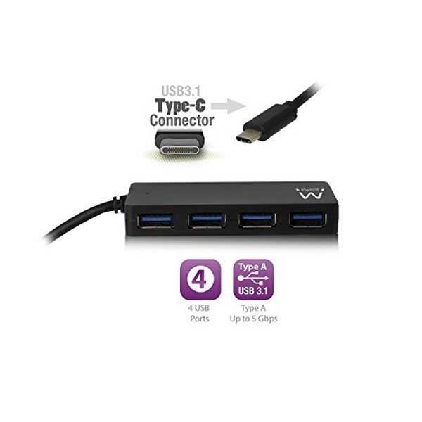 Hub USB Ewent EW1135 4 x USB 3.1 Plug and Play al mejor precio.