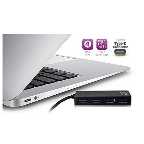 Dé vuelta a su puerto de tipo C en 4 puertos USB-A- Use su periféricos USB 2.0 y 3.1 Gen1 (USB 3.0) en su dispositivo tipo C