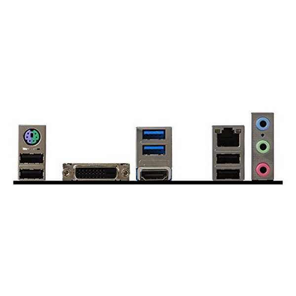 Puertos E/S, Conectores | Internos - 1 x 24-pin ATX main power - 1 x 4-pin ATX 12V power - 4 x SATA 6Gb/s - 1 x USB 2.0 - 1 x USB 3.1 Gen1 - 1 x 4-pin CPU fan - 1 x 4-pin system fan - 1 x Front panel audio - 2 x Front panel - 1 x Serial Port - 1 x Chassis Intrusion - 1 x Clear CMOS jumper Externos - 1 x PS/2 keyboard/ mouse - 4 x USB 2.0 - 2 x USB 3.1 Gen1 - 1 x DVI-D - 1 x HDMI - 1 x LAN (RJ45) - 3 x audio jacks |