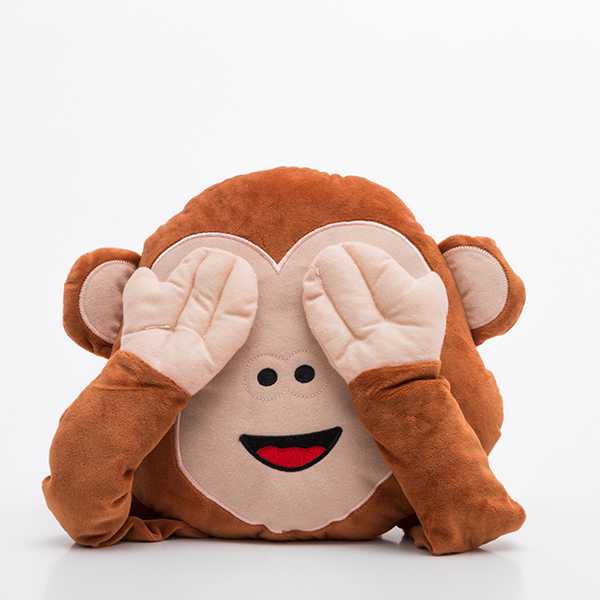 ¡El simpático cojín Emoticono Monkey Gadget and Gifts hará las delicias de mayores y pequeños por su originalidad! Los velcros de sus manitas se pueden pegar en los ojos, en la boca o en las orejas, imitando con exactitud al famoso emoticono.