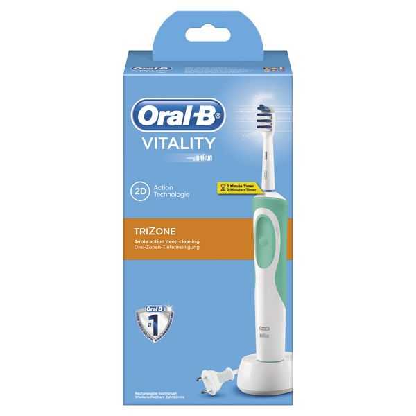 Con 7.600 rotaciones por minuto, el cepillo TriZone Vitality es significativamente más eficaz que un cepillo manual normal. Superiores resultados de limpieza sin cambiar la técnica de cepillado, frente a los de un cepillo manual normal. Disfruta de una limpieza en profundidad con sus filamentos más anchos que barren más superficie dental que un cepillo manual normal.