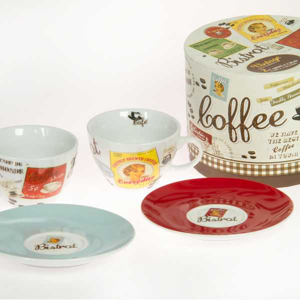 Set 2 tazas de café con plato - Colección Kitchen`s Deco by Bravissima Kitchen