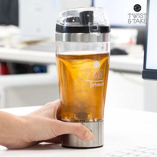 ¡Prepara tus combinaciones favoritas con total comodidad y rapidez gracias al vaso mezclador eléctrico Twist & Take Tornado! Tan sencillo como presionar un botón y sus aspas crearán un efecto tornado capaz de mezclar, batir y remover el contenido sin dejar grumos.