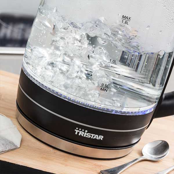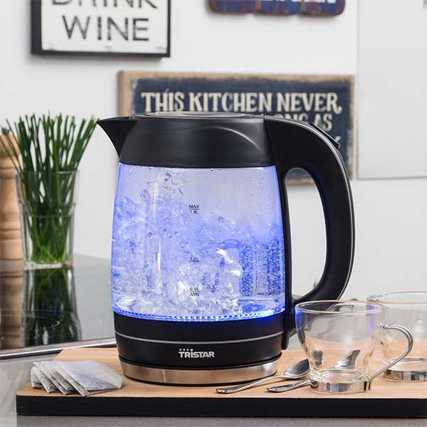 ¡Ya puedes prepar tus infusiones de manera sencilla con el hervidor de agua Tristar WK3222! Capacidad de 1,8 l. Luz LED integrada. Medidas aprox.: 22 x 24 x 16 cm.