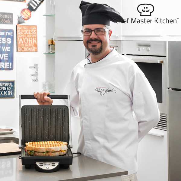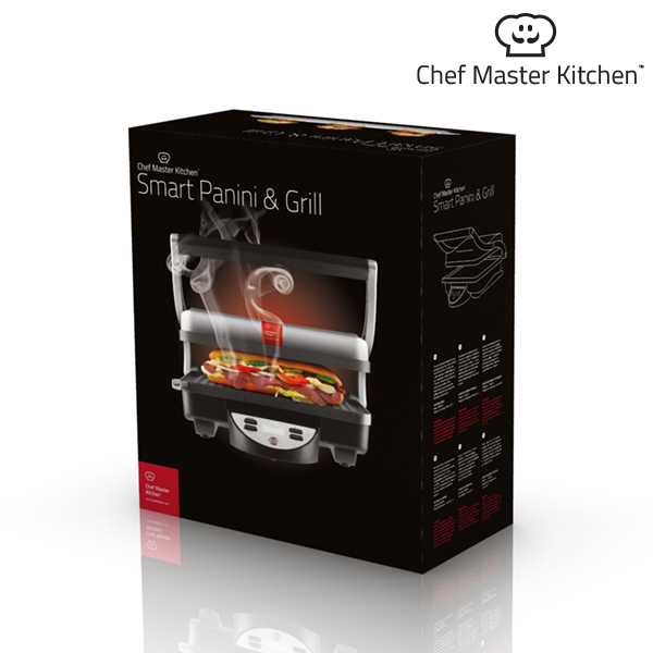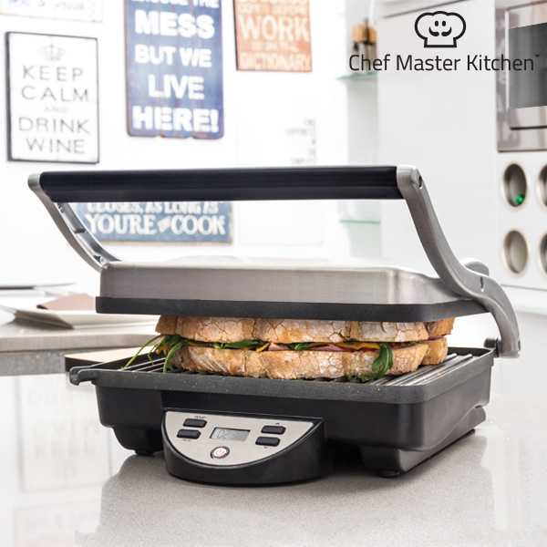 ¡Prepara en casa paninis deliciosos con rapidez y comodidad gracias al panini grill Chef Master Kitchen! También es ideal para preparar sándwiches, bocadillos calientes, verduras, carnes,...