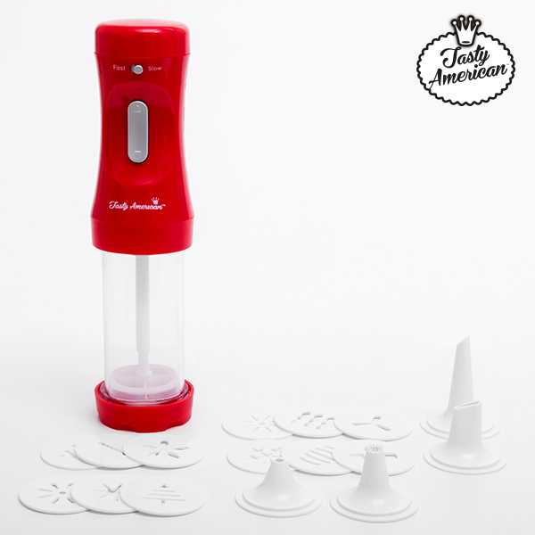 ¡Prepara exquisitas galletas caseras con la máquina para hacer galletas y accesorios Tasty American! Además, podrás poner en práctica tu imaginación al crear diferentes formas y decoración para tus galletas. Una forma rápida y sencilla de poner en práctica tus habilidades de repostería.