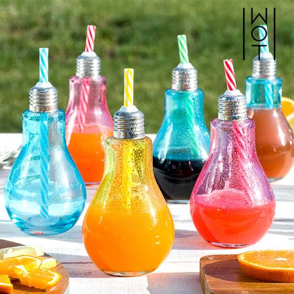 ¡Te presentamos los vasos originales perfectos para fiestas, los vasos Bombilla coloridos con pajitas Wagon Trend 250 ml (pack de 6)!www.wagontrend.com6 vasos Bombilla de vidrio de varios...