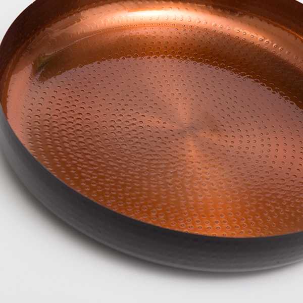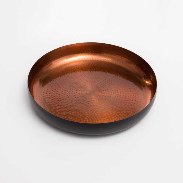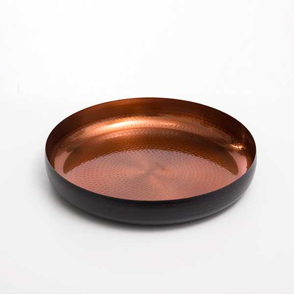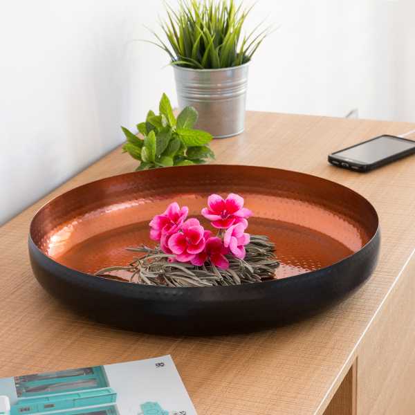 ¡El cuenco decorativo Black Collection Oh My Home (Ø 36 cm) es perfecto para la decoración de los hogares más exclusivos y elegantes! Fabricado en acero inoxidable con interior martillado en tono cobre. Medidas aprox. (diámetro x altura): 36 x 6 cm.