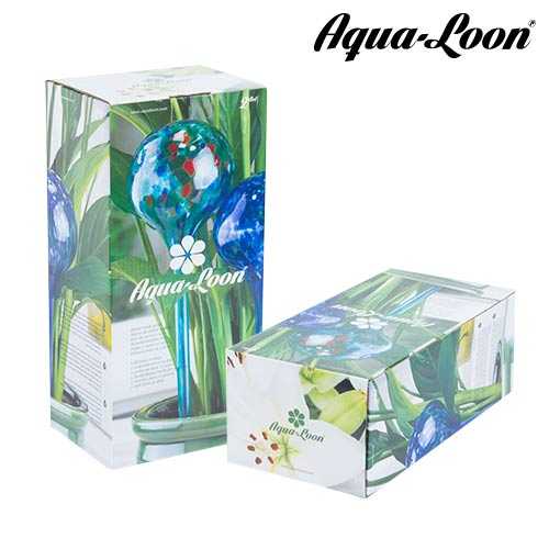 Los globos de riego Aqua Loon son unos globos de vidrio fabricados artesanalmente, que te permitirán decorar y regar tus plantas al mismo tiempo de forma autónoma, fácilmente y sin necesidad de estar pendiente de ellas. Únicamente tienes que llenar el globo de agua e introducirlo en la tierra de la planta, de esta manera el agua se suministrará poco a poco, durando hasta un máximo de 10 días aproximadamente. Una vez vacío, sólo tienes que volver a llenarlo. Los globos de vidrio Aqua Loon son muy prácticos y sirven para cualquier tipo de plantas. Capacidad de cada globo aprox.: 350 ml.