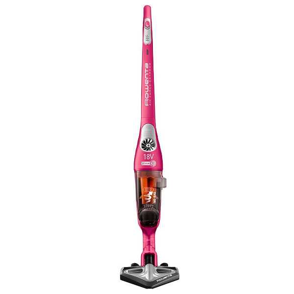 Rowenta RH8819WH. Color del producto: Rosa, Tipo de depósito: Sin bolsa, Capacidad para polvo: 0,5 L. Filtración de aire en aspiradora: Ciclónico, Superficies de limpieza: Alfombra, Suelo duro, Nivel de ruido: 80 dB. Fuente de energía: Batería, Tecnología de batería: Ión de litio, Voltaje de la pila: 18 V. Ancho: 255 mm, Profundidad: 250 mm, Peso: 3,22 kg