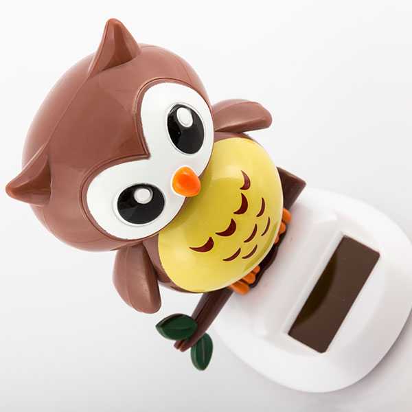 ¿Buscas sorprender con un regalo original? Pues nada mejor que el búho solar con movimiento Gadget and Gifts. ¡Esta original muñeco de plástico no parará de bailar gracias a su panel solar! Disponible en varios diseños que se enviarán aleatoriamente según disponibilidad de stock. Incluye una pegatina de doble cara para lucir su baile en el salpicadero del coche. Medidas aprox.: 5,5 x 10,5 x 6 cm.