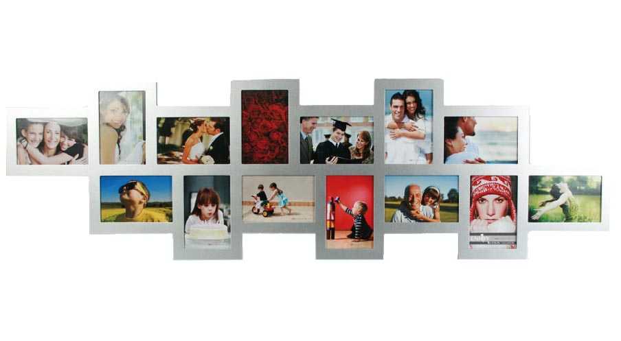 Si eres de los que disfruta teniendo siempre a la vista las fotos más divertidas y entrañables de familiares o amigos, el portafotos Offset con marco de madera plateada Homania tiene que ser tuyo. Decora la pared que más te apetezca y dale un toque elegante a tu hogar. Tiene capacidad para 14 fotografías de 10 x 15 cm. Medidas aprox.: 118 x 36 x 1 cm. Solo permite la posición horizontal.