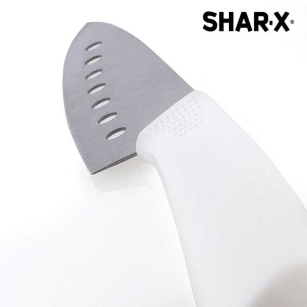 ¡Descubre una manera de cortar más fácil y segura con el cuchillo japonés con orificios Samurai Blade! Shar·X nos presenta este cuchillo inspirado en los utilizados por los chefs japoneses. Dispone de siete agujeros en la hoja que reducen la fricción al cortar, permitiendo cortar los alimentos con mayor facilidad y seguridad.