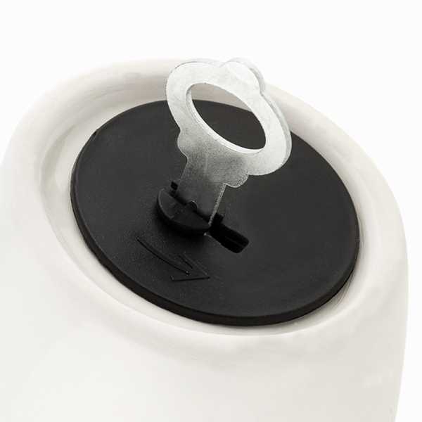 - Tapón de plástico en la base y llave metálica para abrirla
