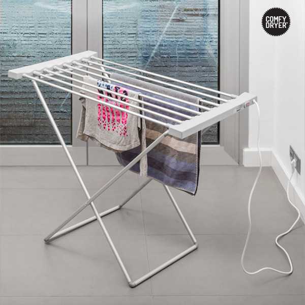 ¡Te presentamos la mejor alternativa a las secadoras convencionales! ¡El tendedero eléctrico Comfy Dryer Max (8 barras)! Con este tendedero de interior secarás tu ropa de una forma fácil y rápida. El tendedero eléctrico te será muy útil y práctico, sobre todo en invierno, donde la humedad y la lluvia dificultan el secado de la ropa, aunque también podrás usar este tendedero secador como un tendedero normal en cualquier momento del año. Se puede plegar y ocupa poco espacio.